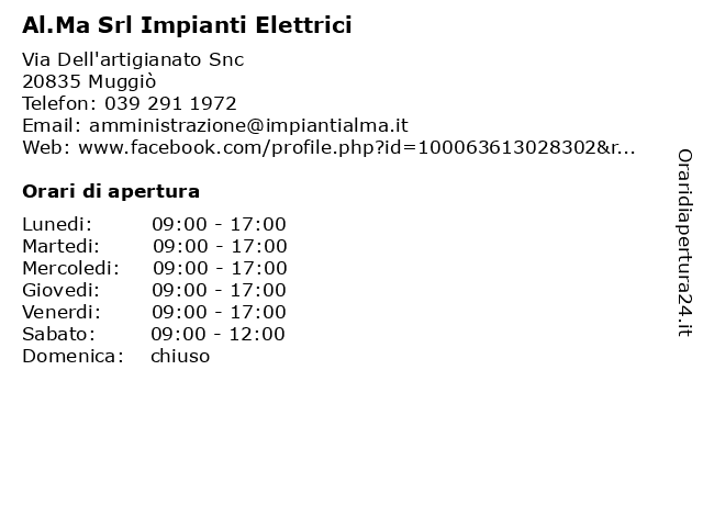 Lunedi | 09:00-17:00 |