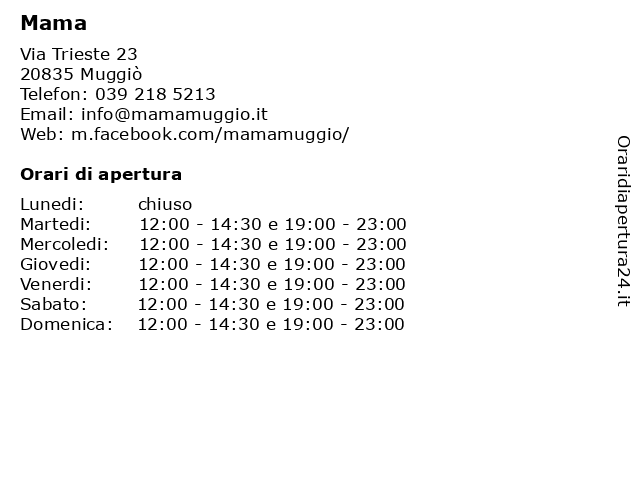 | Martedi | 12:00-14:30 e 19:00-23:00 |
