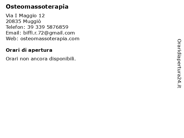 1 Osteomassoterapia (distanza: 2,79 km) Via Alessandro Volta 44, 20900 Monza estetica, massaggi, osteomassoterapia, trattamento 2 Osteomassoterapia (distanza: 2,85 km) Via Emilia 1, 20900 Monza estetica, massaggi, osteomassoterapia, trattamento 3 Osteomassoterapia (distanza: 2,85 km) Via Emilia 1, 20900 Monza estetica, massaggi, osteomassoterapia, trattamento 4 ColSorriso (distanza: 0,01 km) Via Dante Alighieri 6, 20835 Muggiò colsorriso, consultazione, farmaci, ortodonzia, riparazione, trattamento 5 Osteopata Leonardo Tiberio (distanza: 0,44 km) Piazza della Chiesa 16, 20835 Muggiò corpo, disfunzioni, dolore, leonardo, massaggi, osteopata, postura, terapia, tiberio, trattamento 6 Cassa Edile Di Mutualità E Assistenza Milano,Lodi,Monza e Brianza (distanza: 1,20 km) Via Locarno 3, 20900 Monza assistenza, brianza, cassa, di, edile, lodi, milano, monza, mutualità, prestazioni assistenziali, trattamento economico per ferie |