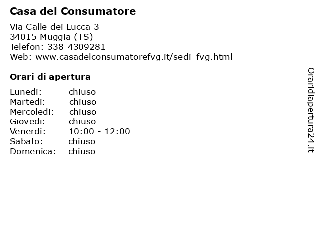 1 Consumatore Famiglia (distanza: 5,42 km) Via San Francesco 4/1, 34133 Trieste consumatore, famiglia, servizio, vendita 2 Lega Consumatori (distanza: 0,41 km) Via Frausin 9, 34015 Muggia associazione, consulenze, consumatori, difesa dei cittadini, difesa dei consumatori, lega, servizi al cittadino 3 Suishin-kan Scuola dello Spirito Puro (distanza: 2,43 km) Via Valmaura 57a, 34139 Trieste dello, difesa personale, golpe, kan, patadas, praticare, puro, scuola, spirito, suishin 4 Fiamma Karate Trieste Shotokan (distanza: 3,03 km) Via Miani 5, 34100 Trieste difesa personale, fiamma, golpe, karate, patadas, praticare, shotokan, trieste 5 Base Logistico Addestrativa (distanza: 3,35 km) Via per Lazzaretto 14, 34015 Muggia addestrativa, base, difesa, documentazione, esercito, logistico, militare, muggia 6 Confconsumatori (distanza: 4,28 km) Campo San Giacomo 10, 34137 TRIESTE alimentazione, ambiente, associazione consumatori, auto, banche, commercio, confconsumatori, energia, internet e tv, moto, poste, privacy, pubblicità, salute e benessere, telefonia, truffe, turismo e trasporti |