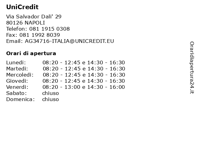 2 Unicredit (distanza: 3,28 km) Corso Italia 63/67, 80010 Quarto assicurazione per la casa, assicurazione per la persona, banca, bancomat, carta prepagata, conto, creditexpress dynamic, finanziamenti, genius first, genius smart, investimenti, mutui, prestiti personali, super genius 2.0, unicredit, unicreditcard click, unicreditcard flexia classic 3 Unicredit (distanza: 4,21 km) Viale Augusto 134/A, 80125 Napoli assicurazione per la casa, assicurazione per la persona, banca, bancomat, carta prepagata, conto, creditexpress dynamic, finanziamenti, genius first, genius smart, investimenti, mutui, prestiti personali, super genius 2.0, unicredit, unicreditcard click, unicreditcard flexia classic 6 Unicredit (distanza: 5,06 km) Via Oberdan 1/B, 80078 Pozzuoli assicurazione per la casa, assicurazione per la persona, banca, bancomat, carta prepagata, conto, creditexpress dynamic, finanziamenti, genius first, genius smart, investimenti, mutui, prestiti personali, super genius 2.0, unicredit, unicreditcard click, unicreditcard flexia classic |