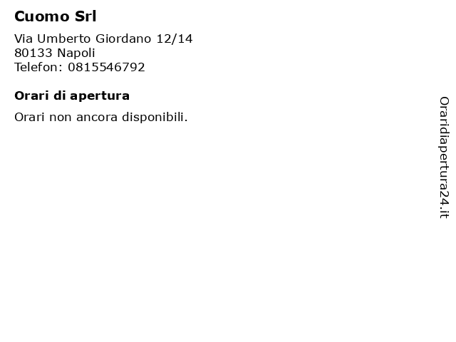 1 Cuomo Srl (distanza: 0,05 km) Via Cristoforo Colombo 8 p. Zza Fran, 80133 Napoli comm, cuomo, dett, fi, hi, radio, televisione 2 Cuomo Srl (distanza: 0,86 km) Via Domenico Capitelli 12, 80134 Napoli comm, cuomo, dett, elettr, elettrodom, mat 3 Cuomo Watches & Jewells (distanza: 0,71 km) Piazza Larga agli Orefici 2, 80100 Napoli (NA) argenteria, bracciali, collane, cuomo, gioielleria, idee regalo, jewells, oreficeria, orologi, watches 4 Azienda Agricola Marisa Cuomo (distanza: 2,61 km) Via Benedetto Brin 49, 80142 Napoli (NA) acquisti, agricola, azienda, convenienza, cuomo, marisa, mercato, shopping, spesa 5 Cuomo Diego (distanza: 3,02 km) Via Piedigrotta 52, 80122 Napoli articoli, comm, cuomo, dett, diego, vari 6 Cuomo Tiziana (distanza: 3,54 km) Viale Del Poggio Di Capodimonte 8, 80131 Napoli comm, cuomo, dett, frutta, tiziana, verdura |