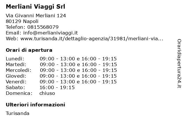 | Venerdi | 09:00-13:00 e 16:00-19:15 |