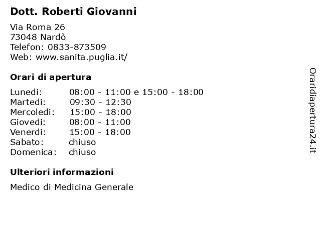 1 Dott. Vaglio Giuseppe (distanza: 0,07 km) Via Roma 16, 73048 Nardo' dott., generale, giuseppe, medicina, medico, pediatra, vaglio 2 Dottor Muci Giovanni (Medico di Medicina Generale) (distanza: 0,09 km) Via Crispi 14, 73048 Nardō (medico, di, dottor, generale), giovanni, medicina, medicina generale, medico di famiglia, muci 3 Avvocato Dell'Atti Giovanni Francesco (distanza: 0,10 km) Via Napoli 7, 73048 Nardo' avvocati, avvocato, dell'atti, francesco, giovanni, legge, processi, studio 4 Comune di Nardō (Assessore. Deleghe: Politiche Sociali, Politiche per la Famiglia, Emergenza Abitativa, Piano Sociale di Zona, Istruzione) (distanza: 0,13 km) Piazza San Pietro snc, 73048 Nardō (assessore., abitativa, amministrazione, assessore., comunali, comune, deleghe, di, emergenza, famiglia, istruzione, la, nardō, per, piano, politiche, servizi, sociale, sociali, zona 5 Dottor Falconieri Marcello (Medico di Medicina Generale) (distanza: 0,29 km) Corso Garibaldi 35, 73048 Nardō (medico, di, dottor, falconieri, generale), marcello, medicina, medicina generale, medico di famiglia 6 Dott. Falconieri Marcello (distanza: 0,31 km) Via Regina Elena 16, 73048 Nardō (medico, di, dott., dottor, falconieri, filograna, generale), marcello, medicina, medicina generale, medico di famiglia, roberto |