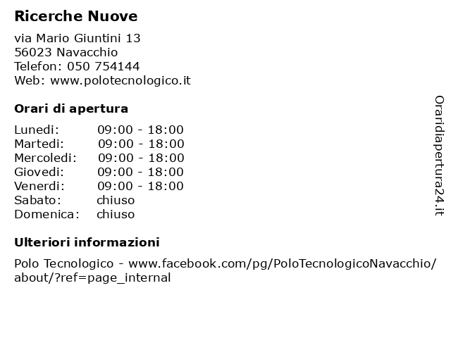 1 Faro Ricerche e Servizi Gruppo C.S. di Sergio Costa & C. S.a.s (distanza: 4,44 km) Via Francesco Montanelli 236, 56121 Pisa agenzia, c., c.s., costa, faro, gruppo, indagini, pisa, ricerche, sergio, servizi 2 Centro Polifunzionale Le Querciole (Centro Ricerche Cliniche - Punto Prelievi) (distanza: 5,29 km) Via di Cisanello 1/A, 56010 Ghezzano (centro, ambulatorio, benessere, centro, cliniche, cura per le persona, diagnosi, fisioterapia, le, polifunzionale, prelievi, prelievi), punto, querciole, ricerche, visite mediche, visite specialistiche 3 Cascina Case Nuove Ss Agricola o Per Abbreviazione Cascina Case Nuove Ss Agricola (distanza: 5,70 km) Cascina Fornace 10, 27010 Santa Cristina E Bissone abbreviazione, affitto, agricola, cascina, case, immob, nuove, proprietà 4 Faro Ricerche e Servizi (distanza: 6,42 km) Via Montanelli 236, 56121 Pisa attenzione, cappello, clienti, fabbrica, faro, ricerche, servizi 5 Porte Nuove (distanza: 7,86 km) Via San Frediano 18, 56126 Pisa agenti, assicuraz, cleri, daniela, nuove, porte, serv 6 Biblioteca dell'Istituto Internazionale per le Ricerche geotermiche del CNR (distanza: 7,98 km) Via Alfieri 1, 56010 San Cataldo - Pisa (PI) accesso, anagrafe, antichi, arte, autore, biblioteca, biblioteca comunale, biblioteche, catalogazione, catalogo topografico, cnr, comunale, del, dell'istituto, geotermiche, internazionale, le, per, ricerche, servizi |