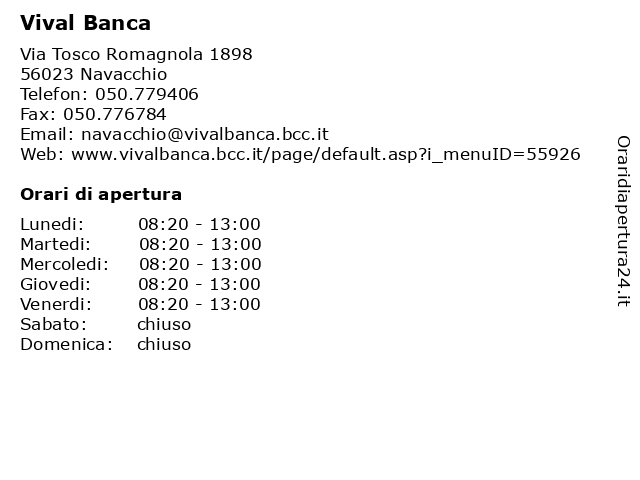1 Banca Monte dei Paschi di Siena (distanza: 0,07 km) Largo Pietro Gori 5, 56023 Cascina attività bancarie, banca, dei, denaro, di, monte, pacchi, paschi, siena, trasferimenti, vaglia postali 2 Banca Monte dei Paschi di Siena (distanza: 2,61 km) Via Tosco Romagnola 757, 56021 Cascina attività bancarie, banca, dei, denaro, di, monte, pacchi, paschi, siena, trasferimenti, vaglia postali 4 Credem Credito Emiliano (ATM) (distanza: 4,78 km) Via Arturo Toscanini 1, 56010 Vicopisano (atm), attivita bancarie, banca, credem, credito, emiliano, firenze, transazione 5 Banca Monte dei Paschi di Siena (distanza: 5,09 km) Corso Giacomo Matteotti 93, 56021 Cascina attività bancarie, banca, dei, denaro, di, monte, pacchi, paschi, siena, trasferimenti, vaglia postali 6 Banca Monte dei Paschi di Siena (distanza: 5,81 km) Piazza Felice Cavallotti 4, 56011 Calci attività bancarie, banca, dei, denaro, di, monte, pacchi, paschi, siena, trasferimenti, vaglia postali |