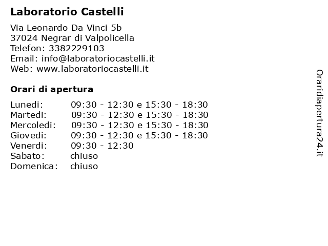 | Lunedi | 09:30-12:30 e 15:30-18:30 |