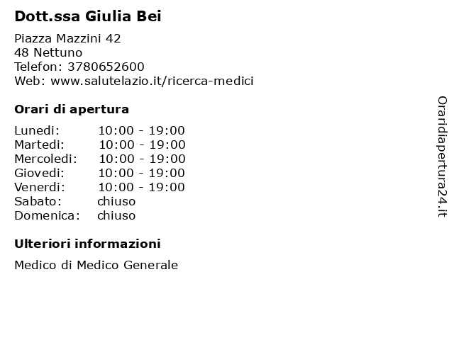 1 Dott.ssa Giulia Bei (distanza: 0,30 km) Via Olmata 23, 00048 Nettuno (RM) ambulatori, analisi, bei, cura della persona, cure, dott.ssa, giulia, medici, medicina, sanità, visite mediche 2 Ferienwohnung am Meer bei Rom (distanza: 5,19 km) Via Ardeatina s.n.c., 00042 Anzio (RM) agriturismo, albergo, am, b&b, bei, camere, ferienwohnung, meer, pernottamenti, ristorante, rom, turismo, vacanze 3 Giulia Immobiliare Srl (distanza: 9,92 km) Via Val Camonica Snc, 04011 Aprilia affitto, giulia, immob, immobiliare, proprietà 4 L'Oasi di Giulia (distanza: 12,00 km) Strada Macchia Grande 13, 04100 Borgo Sabotino (LT) di, eventi, giulia, l'oasi, oasi, ristorante italiano 5 Dott. Logopedista Faillone Giulia (distanza: 14,82 km) Via Paisiello 26, 04011 Aprilia bellezza, cura, dott., faillone, giulia, logopedista, medicina, salute 6 Sani e Belli Di Giulia Maltese (distanza: 15,86 km) Viale Marino 60, 00040 Ardea articoli, belli, comm, dett, giulia, maltese, sani, vari |