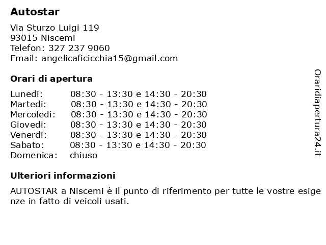 Lunedi | 08:30-13:30 e 14:30-20:30 |
