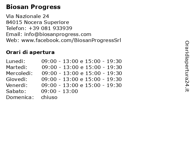 | Martedi | 09:00-13:00 e 15:00-19:30 |