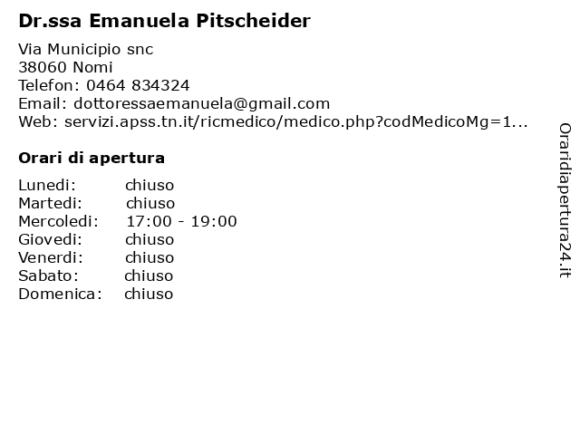 1 Dott.ssa Pitscheider Emanuela (distanza: 0,31 km) Via Municipio snc, 38060 Nomi ambulatorio, dott.ssa, emanuela, medicina, medico, medico di famiglia, pediatra, pitscheider, sanità, studio medico, visite 2 Dott.ssa Pitscheider Emanuela (distanza: 1,63 km) Piazza De Gasperi snc, 38060 Pomarolo ambulatorio, cura della persona, dott.ssa, emanuela, medicina, medico, pitscheider, prevenzione, salute 3 Ambulatorio Medico (Dr.ssa Pitscheider Emanuela) (distanza: 1,82 km) Piazza De Gasperi snc, 38060 Pomarolo (dr.ssa, ambulatorio, ambulatorio comunale, cura, dottore, dottoressa, emanuela), medico, pazienti, pitscheider, pitscheider), visite 4 Dr.ssa Pitscheider Emanuela (distanza: 3,42 km) Via Dalla Chiesa 23, 38060 Villa Lagarina (dr.ssa, ambulatorio, ambulatorio comunale, cura, dottore, dottoressa, dr.ssa, emanuela, emanuela), medico, pazienti, pitscheider, pitscheider), visite 5 Ambulatorio Medico (Dr.ssa Pitscheider) (distanza: 3,43 km) Frazione Castellano snc, 38060 Villa Lagarina (dr.ssa, ambulatorio, ambulatorio comunale, cura, dottore, dottoressa, medico, pazienti, pitscheider), visite 6 Ambulatorio Medico (Dr.ssa Pitscheider) (distanza: 3,43 km) Frazione Pedersano snc, 38060 Villa Lagarina (dr.ssa, ambulatorio, ambulatorio comunale, cura, dottore, dottoressa, medico, pazienti, pitscheider), visite |