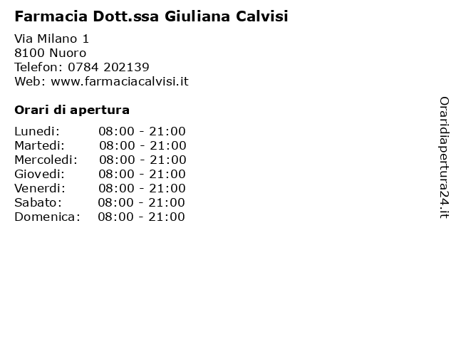 | Lunedi | 08:00-21:00 |