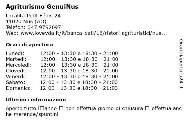 | Domenica | 12:00-13:30 e 18:30-21:00 |