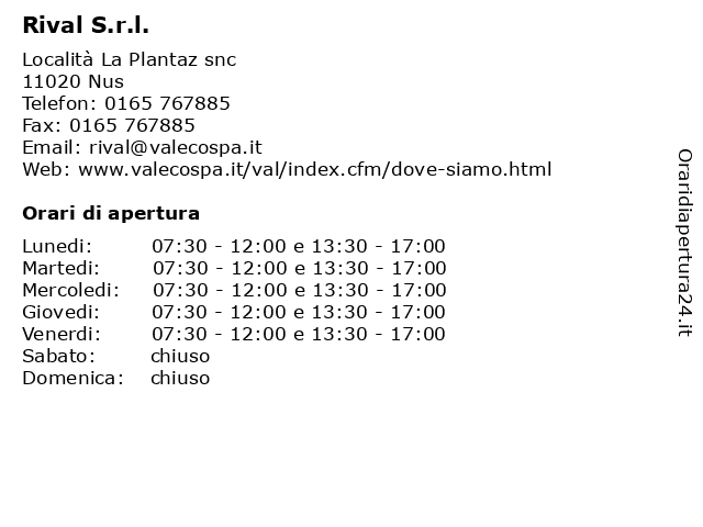 | Venerdi | 07:30-12:00 e 13:30-17:00 |