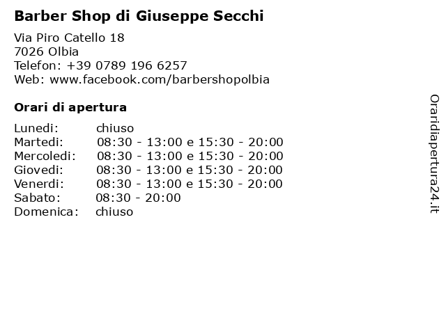 | Martedi | 08:30-13:00 e 15:30-20:00 |