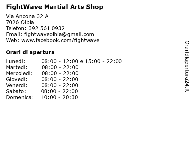 | Lunedi | 08:00-12:00 e 15:00-22:00 |