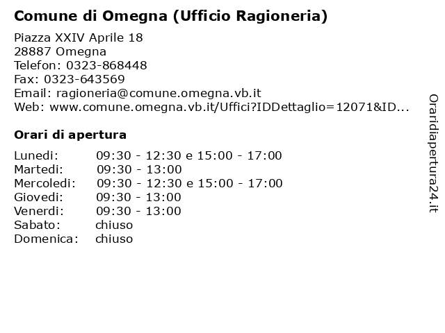 | Lunedi | 09:30-12:30 e 15:00-17:00 |