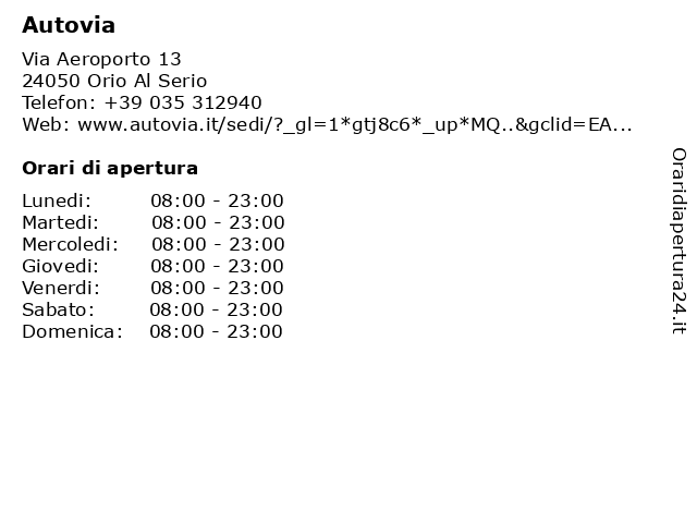 Lunedi | 08:00-23:00 |