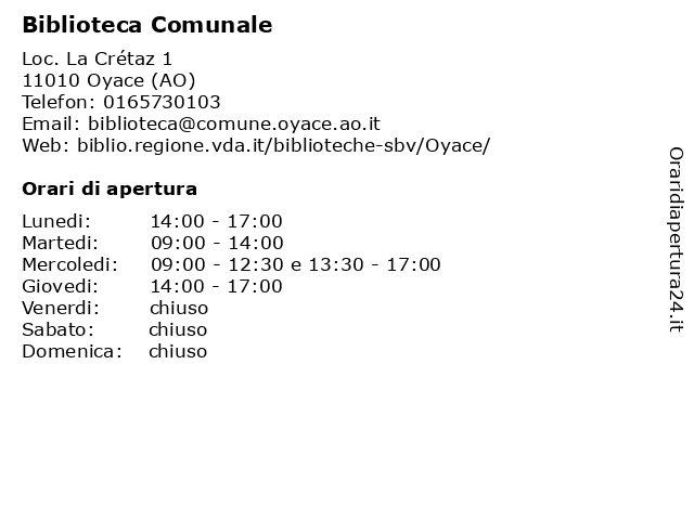 | Mercoledi | 09:00-12:30 e 13:30-17:00 |