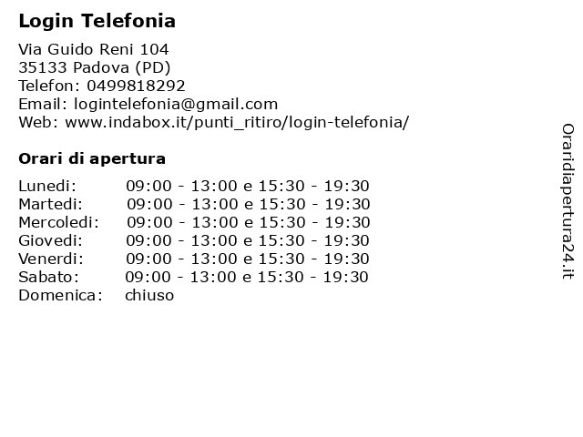 | Lunedi | 09:00-13:00 e 15:30-19:30 |