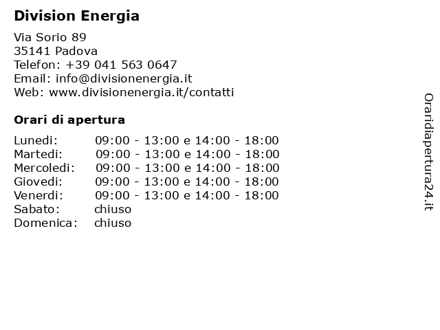 | Venerdi | 09:00-13:00 e 14:00-18:00 |
