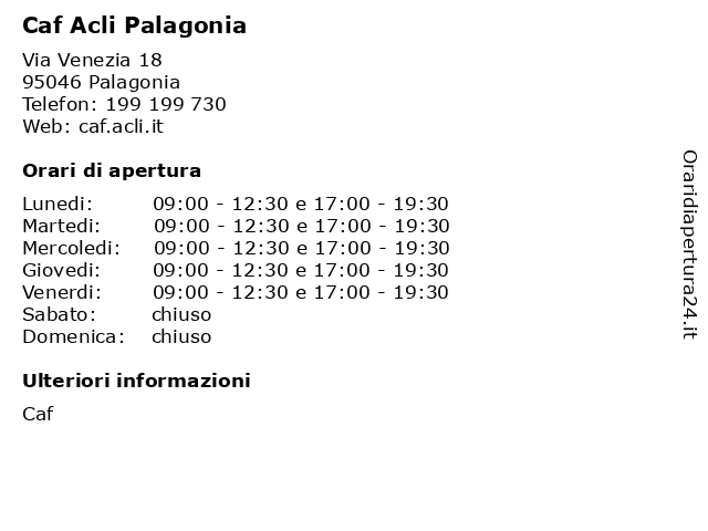 | Lunedi | 09:00-12:30 e 17:00-19:30 |