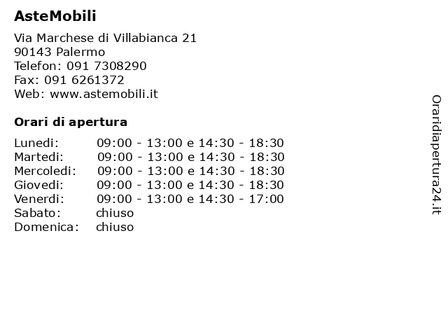 Lunedi | 09:00-13:00 e 14:30-18:30 |