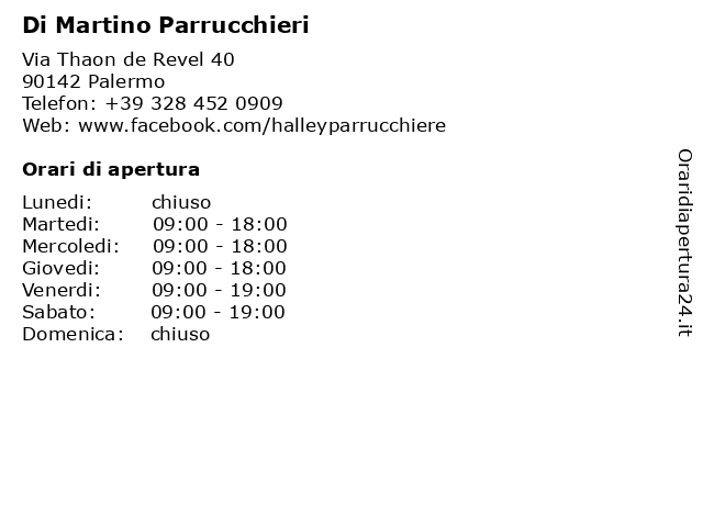 1 Maracana' Di Tommaso Martino e Figli Sas (distanza: 0,69 km) Via Federico Imperatore 99, 90143 Palermo catering, figli, maracana, martino, ristoranti, tommaso 2 Martino Gioielli (distanza: 1,19 km) Via Papa Sergio I 48/F, 90142 Palermo gioielleria, gioielli, martino 3 Di Martino Drinks Brunch (distanza: 2,00 km) Via Giuseppe Mazzini 52/54, 90139 Palermo brunch, di, drinks, gelateria, martino, pasticceria 4 Martino (distanza: 2,22 km) Via Nicolò Garzilli 45, 90141 Palermo caffetteria, gelateira, martino, pasticceria 5 Ambulatorio Veterinario Del Dott. Massimo Di Martino (distanza: 2,23 km) via Ammiraglio Gravina 99, 90139 Palermo ambulatorio, chirurgia, cura animali, del, di, dott., martino, massimo, medicazione, veterinario 6 Avvocato Di Martino Grazia (distanza: 2,46 km) Via Roma 443, 90139 Palermo (PA) appuntamenti, avvocati, avvocato, di, difensori, grazia, leggi, martino |