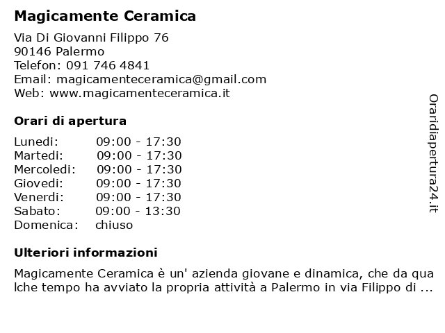 1 ceramica edilizia (distanza: 1,05 km) Via antonino de stefano 1, 90146 Palermo ceramica, edilizia, fornitore di pompe, negozi di vernici, negozi fai da te, produttori di vetro 2 Il Mercatone della Ceramica (distanza: 2,13 km) Via Giuseppe Lanza di Scalea 1044, 90146 Palermo ceramica, ceramica., della, il, mercatone, negozio ceramiche, sanitari 3 Il Mercatone della Ceramica S.r.l. (distanza: 2,14 km) Via Lanza di Scalea Giuseppe 1044, 90146 Palermo ceramica, mercatone 4 La Fabbrica della Ceramica di Susanna Desimone (distanza: 2,50 km) Via Massimo D'Azeglio 21, 90100 Palermo (PA) arredo bagno, articoli per disabili, box doccia, camini, ceramica, ceramiche, complementi per l'edilizia, della, desimone, di, elettrodomestici da incasso, fabbrica, idraulica, la, lavatoi, lavelli, porte, rubinetteria, sanitari, susanna 5 Ceramica Rossa (distanza: 2,74 km) Via Alessio Di Giovanni 48/50, 90144 Palermo (PA) belleza, ceramica, dream, hair, parrucchieri, rossa, salud, spa 6 Il Mercatone Della Ceramica Srl (distanza: 2,90 km) Via Nicolo' Mineo 15/c Da Magna, 90145 Palermo ceramica, comm, dett, mercatone, pavim, rivestimenti |