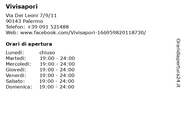 1 L'Acquario Restaurant (distanza: 0,08 km) Piazza Leoni 28/31, 90100 Palermo bevande, cibo, l'acquario, restaurant, ristorante 2 Sisa (distanza: 0,08 km) Via del Bersagliere 82, 90143 Palermo cibo, mangiare, ristorazione, sisa, supermercato 3 Ristorante Hana Sushi (distanza: 0,15 km) Viale Croce Rossa 27, 90144 Palermo cibo, hana, ristorante, sushi 4 Ristorante Hana Sushi (distanza: 0,15 km) Viale Croce Rossa 27, 90143 Palermo bere, cibo, hana, mangiare, ristorante, ristorazione, sushi 5 L'Essentiale - Alimenti alla Spina (distanza: 0,28 km) Viale Emilia 74, 90144 Palermo alimenti, alla, cibo, l'essentiale, spina 6 Panificio La Licata (distanza: 0,50 km) Via Ausonia 17/19, 90100 Palermo dolci, focacce, la, licata, pane, panificio, pizza, prodotti da forno |