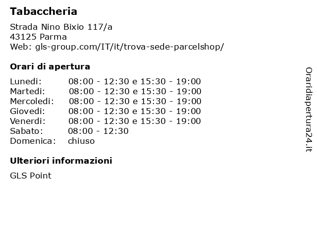 1 Tabaccheria (distanza: 1,07 km) Via Garibaldi 27/A, 43121 Parma (PR) gratta e vinci, lotto, lottomatica, ricevitorie, scommesse, sigarette, sisal, tabaccheria 2 Tabaccheria (distanza: 2,57 km) Via Cassio Parmense 6, 43123 Parma bar, birrerie, cervi, company, paninoteche, rosella, tabaccheria 5 Tabaccheria (distanza: 14,74 km) Piazza della Repubblica 67, 42100 Montecchio Emilia (RE) pacchi, posta, tabaccheria 6 Tabaccheria (distanza: 14,74 km) Piazza della Repubblica 27, 42027 Montecchio Emilia gratta e vinci, lotto, lottomatica, ricevitorie, scommesse, sigarette, sisal, tabaccheri, tabaccheria |