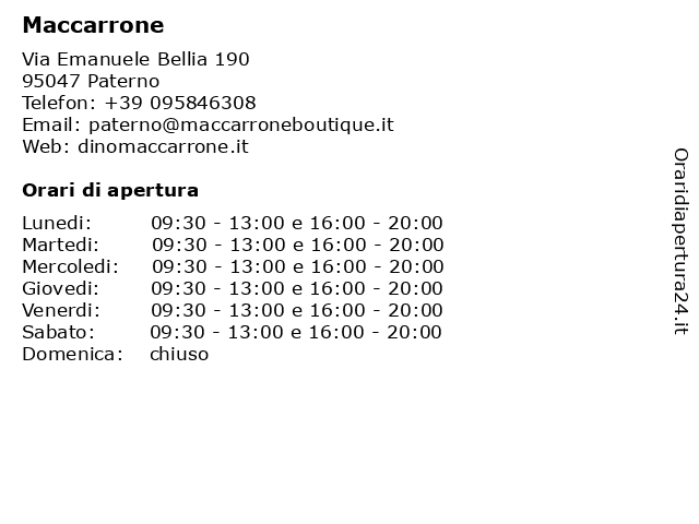 | Lunedi | 09:30-13:00 e 16:00-20:00 |