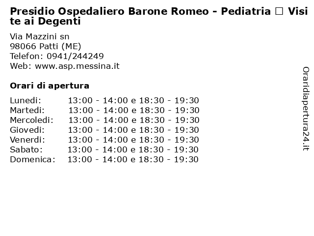 | Domenica | 13:00-14:00 e 18:30-19:30 |