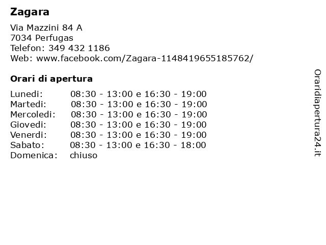 | Sabato | 08:30-13:00 e 16:30-18:00 |