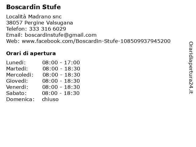 1 Genetin Stufe (distanza: 0,59 km) Località Ponte Regio s.n.c., 38057 Pergine Valsugana assistenza, caldaie, genetin, riparazioni, stufe 2 Genetin Stufe (distanza: 1,37 km) Località Ponte Regio Snc, 38057 Pergine Valsugana azienda, cliente, fabbrica, genetin, stufe, vendita 3 Il Fumista di Boscardin Mirko (distanza: 2,63 km) Via S. Giovanni Battista 39, 38057 Pergine Valsugana boscardin, fumista, mirko 4 SVAI (Orario Showroom ) (distanza: 12,13 km) Via Salorno 2, 38100 Trento (TN) (orario, caminetti, idrosanitaria, mobili, pavimenti, riscaldamento, rivestimenti, rubinetterie, sanitari, showroom, stufe, svai 5 Galattica (distanza: 38,24 km) Via Sessegoli Timonchiello 2, 36014 Santorso abbigl, antonella, boscardin, comm, dett, galattica, genere 6 Boscardin Maria Fernanda (distanza: 40,25 km) Via Vitarolo 96, 36046 Lusiana boscardin, catering, fernanda, maria, ristoranti |