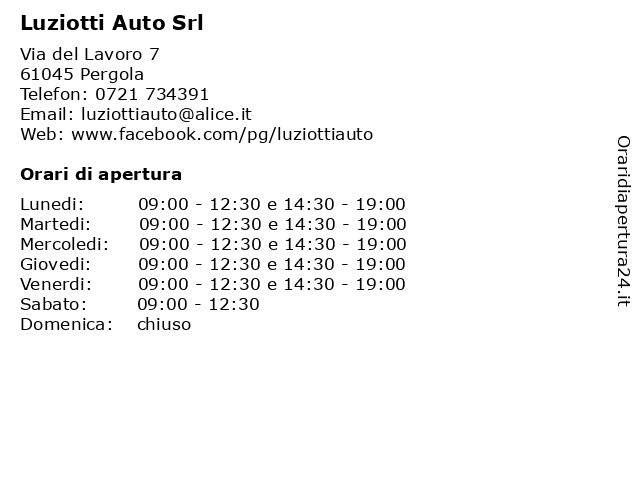 | Lunedi | 09:00-12:30 e 14:30-19:00 |