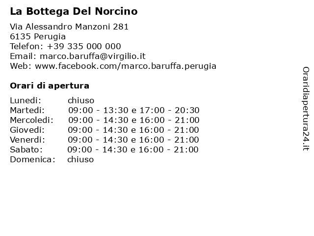 | Martedi | 09:00-13:30 e 17:00-20:30 |