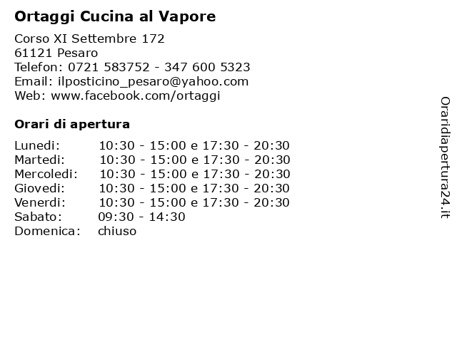 | Lunedi | 10:30-15:00 e 17:30-20:30 |
