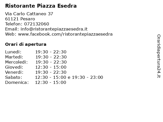 Sabato | 12:30-15:00 e 19:30-23:00 |