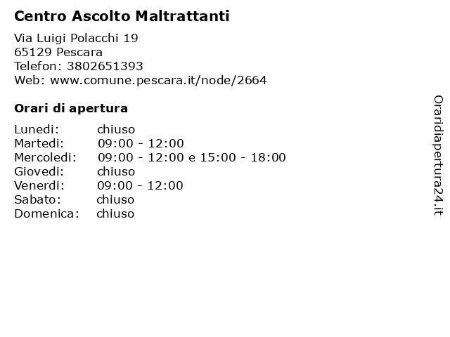 | Mercoledi | 09:00-12:00 e 15:00-18:00 |