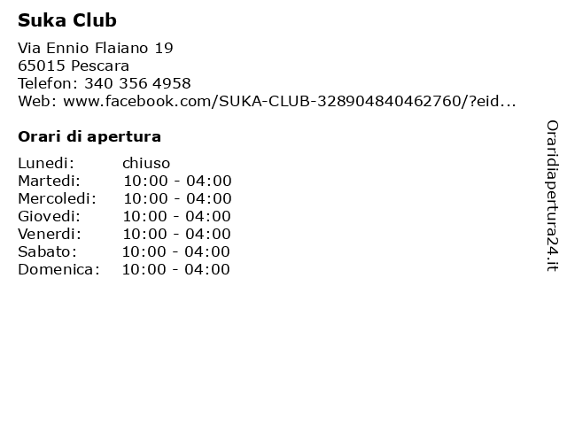 | Venerdi | 10:00-04:00 |