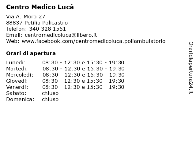 | Lunedi | 08:30-12:30 e 15:30-19:30 |