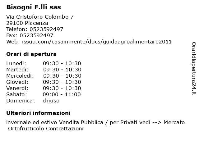 1 Bisogni Andrea (distanza: 2,21 km) Via Antonio Emmanueli 0, 29121 Piacenza andrea, bisogni, edicole, giornalai 2 Il Chiosco Snc Di Castelli Enrico e Bisogni Annunziata (distanza: 21,20 km) Via Fratelli Bandiera 13, 29015 Castel San Giovanni annunziata, bisogni, castelli, chiosco, enrico, fiorai 3 Studio Bersani (distanza: 51,50 km) Viale Giuseppe di vittorio 31, 20090 Pantigliate (MI) ascoltando e comprendendo i lori bisogni per consigliarli al meglio, bersani, commercialisti e revisori legali, grazie all’esperienza quasi trentennale, ha acquisito gli strumenti necessari per far fronte alle esigenze dei propri clienti, lo studio bersani, studio 4 Banca 'Il mio tempo per i tuoi bisogni' (distanza: 56,46 km) Via Mazzini 6 , c/o Uil pensionati, 43121 Parma 'il, aiuto, assistenza, associazione, azienda ospedaliera, banca, bisogni', cura, malattia, mio, per, sclerosi multipla, solidarietà, sostegno, tempo, tuoi 5 Mercato Ortofrutticolo - Orario Contrattazioni (distanza: 0,00 km) Via Cristoforo Colombo 7, 29100 Piacenza contrattazioni, mercato, mercato ortofrutticolo, orario, ortofrutticolo, verdure 6 Mercato Ortofrutticolo - Orario Vendita Pubblica (distanza: 0,00 km) Via Cristoforo Colombo 7, 29100 Piacenza mercato, mercato ortofrutticolo, orario, ortofrutticolo, pubblica, vendita, verdure |