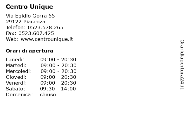 | Lunedi | 09:00-20:30 |