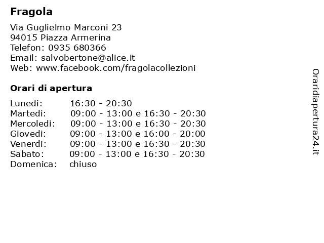 Martedi | 09:00-13:00 e 16:30-20:30 |