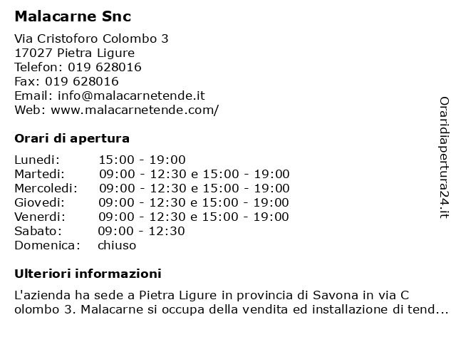 1 Malacarne Tende (distanza: 0,03 km) Via Colombo 3, 17027 Pietra Ligure (SV) malacarne, negozio, tende, vendita 3 Spazio Porte snc (distanza: 12,16 km) Via Torre Pernice Polo 90, 17031 Albenga, SV negozio, porte, snc, spazio, vendita 4 IRIS CERAMICHE SRL (Showroom) (distanza: 21,42 km) V. Matteotti 45, 17041 Altare (SV) (orari, (showroom), ceramiche, ceramiche per pavimenti e rivestimenti vendita al dettaglio, idrosanitari - commercio, iris, pavimenti legno, porte, rivestimenti, showroom), srl 5 ICSA porte e finestre d'arredamento (distanza: 24,28 km) Via Francesco Crispi 66 r, 17100 Savona d'arredamento, finestre, icsa, porte, porte corazzate, serramenti 6 Fracchia (distanza: 32,10 km) Località Rio Basco 18/a, 17044 Stella - Savona fracchia, porte corazzate, serramenti |