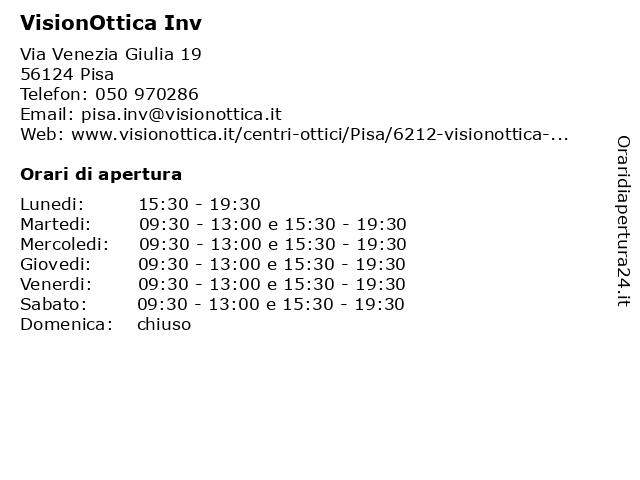 | Martedi | 09:30-13:00 e 15:30-19:30 |