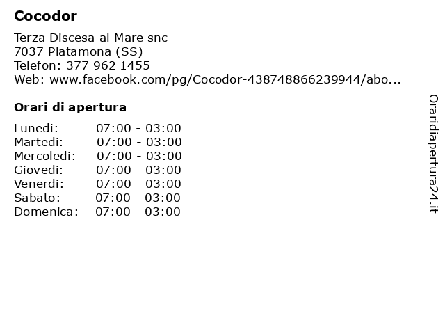 1 Cocodor (distanza: 9,40 km) Terza Discesa al Mare Platamona snc, 07100 Sorso club, cocodor, pizzeria. bar, ristorante 2 Pizzeria Paninoteca Lido Sardegna (distanza: 0,09 km) Via della Torre 1, 07100 Sorso alabriza, bar, club, lido, paninoteca, pizzeria, ristorante, sardegna 3 Trama Beach Club Pizza Restaurant (distanza: 0,09 km) Via della Torre 1, 07100 Sassari bar, beach, club, lido, mare, pizza, restaurant, spiagge, trama, vacanze 4 Plata Beach Surf Club (distanza: 0,11 km) Via della Torre s.n.c., 07037 Sorso beach, club, divertimento, lido, mare, plata, spiaggia, surf 5 Sardinian Wind Wave Club - Scuola di windsurf surf sup a Platamona Stintino Alghero (distanza: 0,39 km) Via degli Oleandri s.n.c., 07037 Platamona alghero, club, corsi, danza, di, platamona, sardinian, scuola, scuola di sport, scuole, sport, sportivo, stintino, sup, surf, wave, wind, windsurf 6 House Club Caffe' Sas Di Campus Roberto & c. (distanza: 4,53 km) Regione Serralonga p. 48 70, 07037 Sorso bar, birrerie, caffe, campus, club, house, paninoteche, roberto |