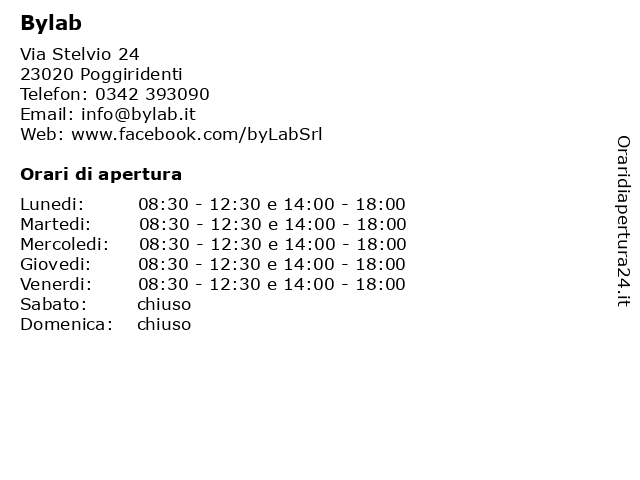 | Lunedi | 08:30-12:30 e 14:00-18:00 |