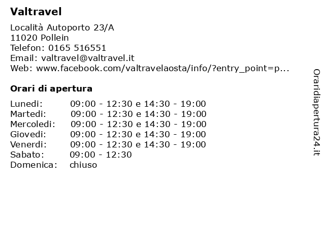 | Venerdi | 09:00-12:30 e 14:30-19:00 |
